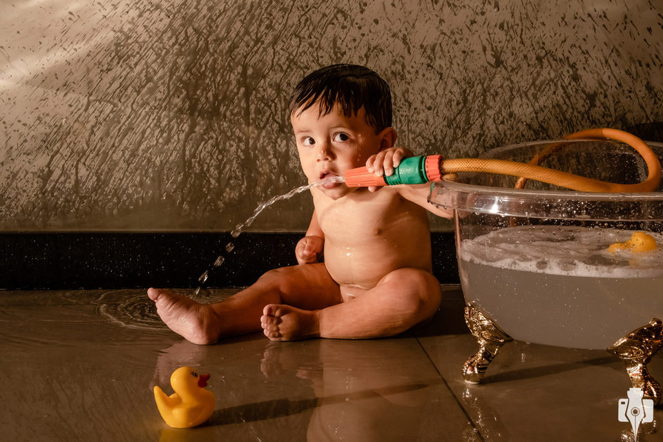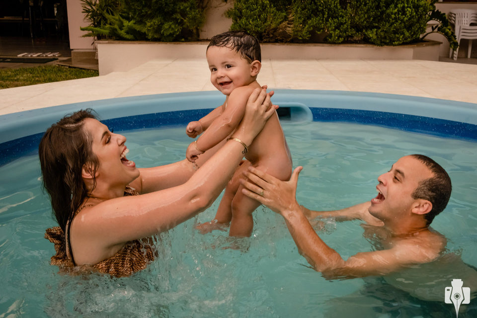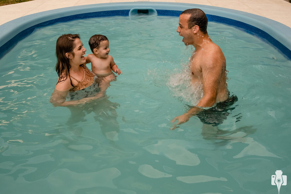A casa dos avós paternos, a Eunice e o Mário, foi o local escolhido desta vez. Uma tarde de verão escaldante de Fevereiro pede um banho de banheira, e também uma folia na piscina com os pais.