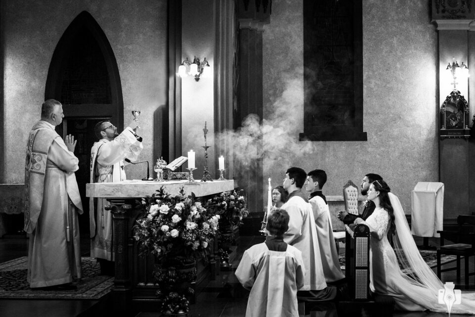 Eles casaram na Igreja nossa Senhora de Lourdes de Canela, a Catedral de Pedra, a cerimônia foi linda e emocionante, entre os convidados nos chamou a atencão o grande número de crianças, nosso maior presente de Deus, o Pe. Lucas fez uma homilia reflexiva, de deixar um casal que tivesse dúvidas sobre o matrimonio de pernas bambas, mas no caso da Laura e do Rafael logo se percebe que estavam preparados para o sacramento.