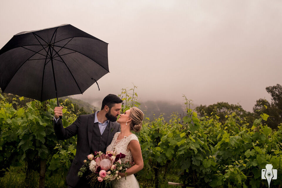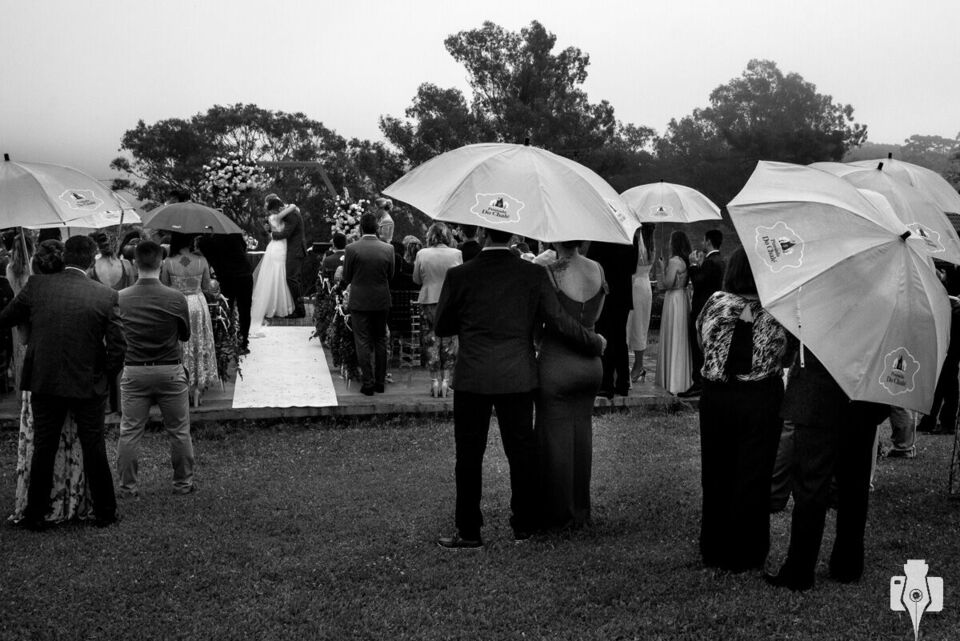 No dia do casamento o céu estava nublado, tinha um leve cerração e garoava, um dia lindo, porque não?! Existem várias maneiras de ver as coisas, eu especialmente, adoro um dia de inverno com chuva.