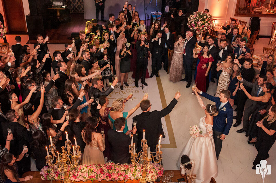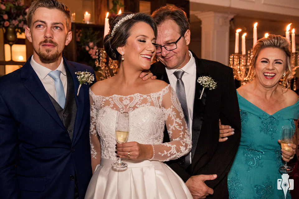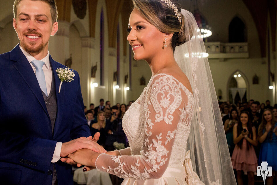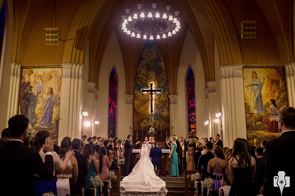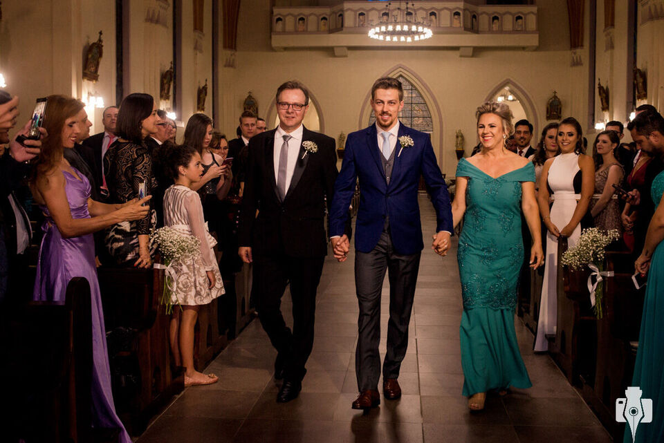 A família deles é lá do Paraná, então pode se dizer que foi quase um destination wedding, pois todos os familiares e amigos vieram para prestigiar o casamento que aconteceu na Catedral de Canela, cidade onde o casal vive atualmente.