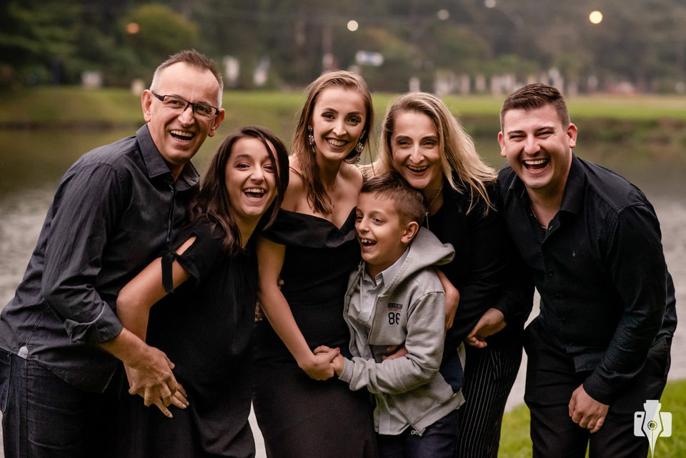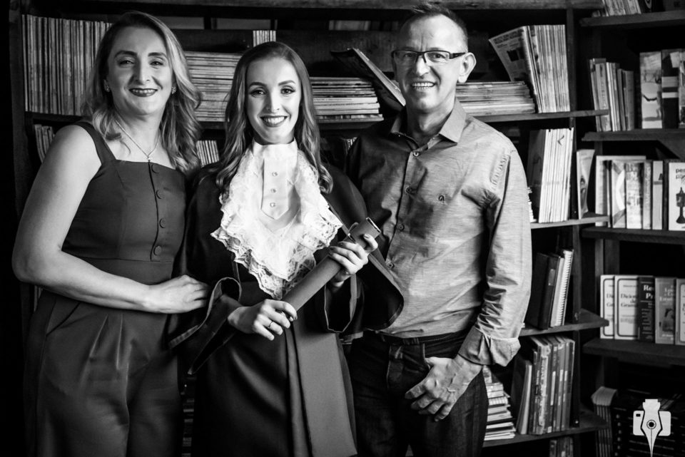 Os pais, o Paulo e a Viviana, com os olhos brilhando de tanto orgulho desta filha querida, os irmãos, Mariana e Pedro, amorosos com a irmã mais velha, que é um exemplo para eles, e o namorado Emanuel apaixonado e com um sorriso aberto.