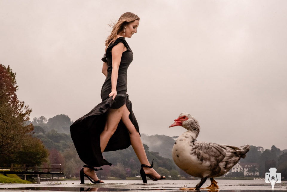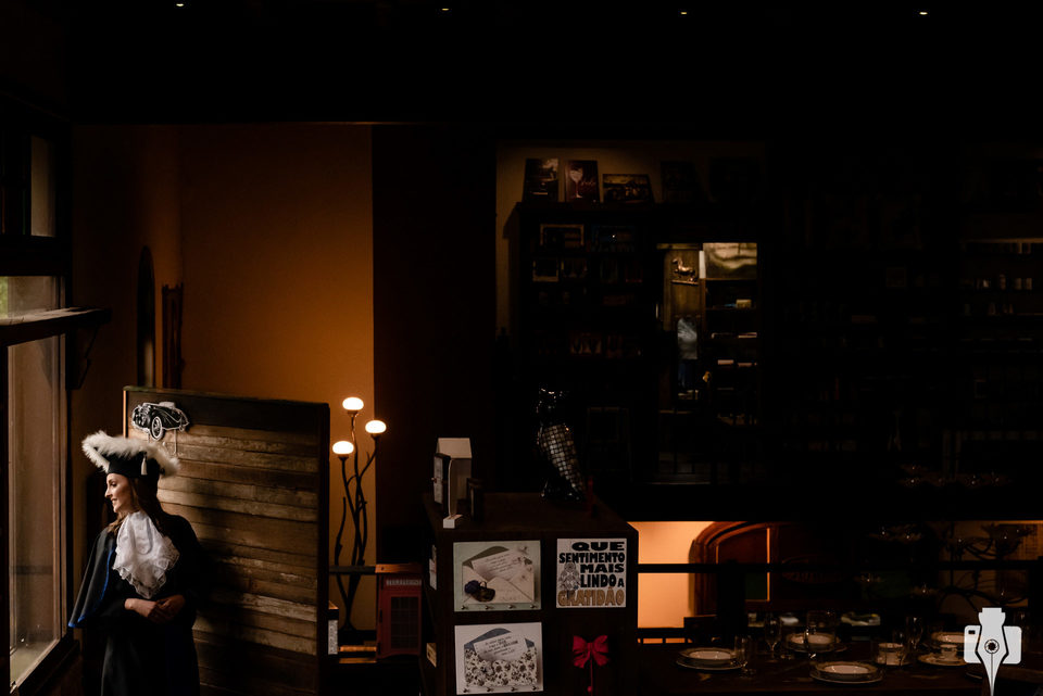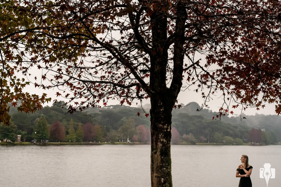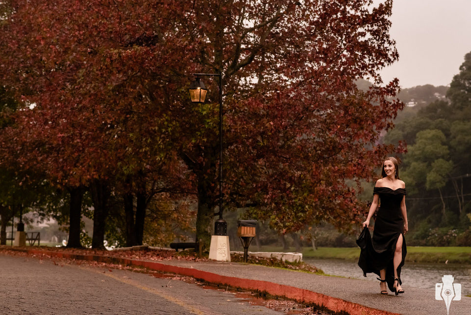 Foi um dia chuvoso de outono da Serra Gaúcha, o que não diminui a animação da Paula e da sua família, as fotos foram feitas na Livraria Mirage de São Francisco e em meio a uma garoa no Lago São Bernardo.