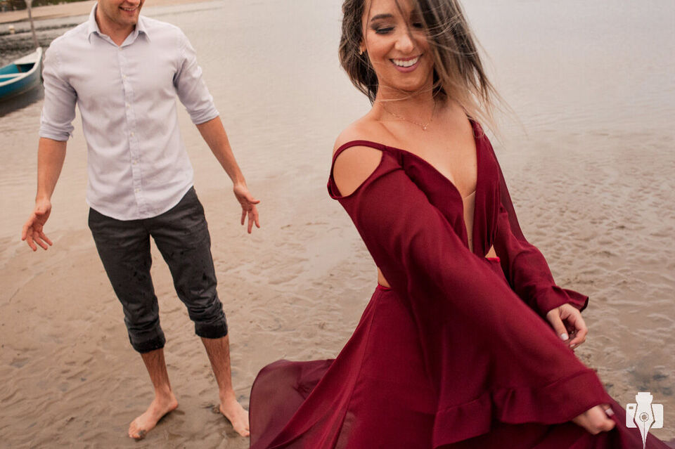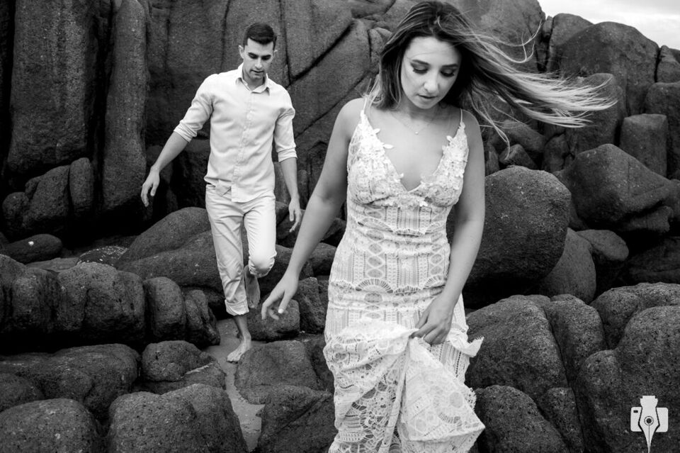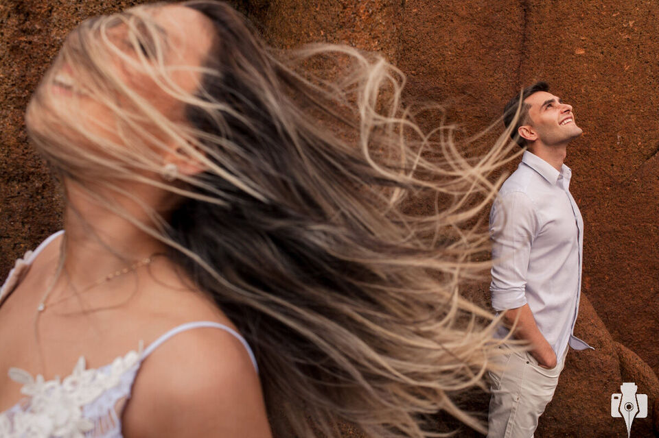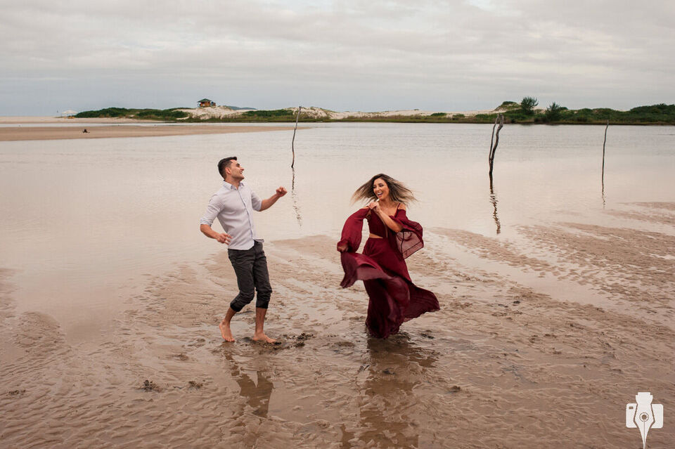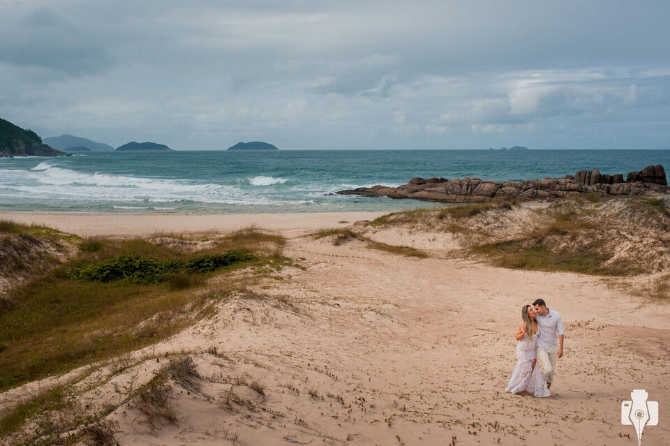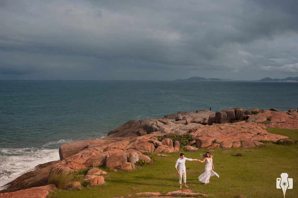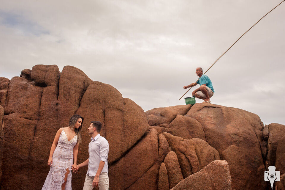 O dia de fotos lá na praia não foi como se imagina: ensolarado! Pelo contrário, foi bem nublado, com horas que teve até uma garoa, mas isso não atrapalhou em nada a beleza do lugar. A paisagem lá é sempre linda e, com toda certeza, rendeu boas fotos.