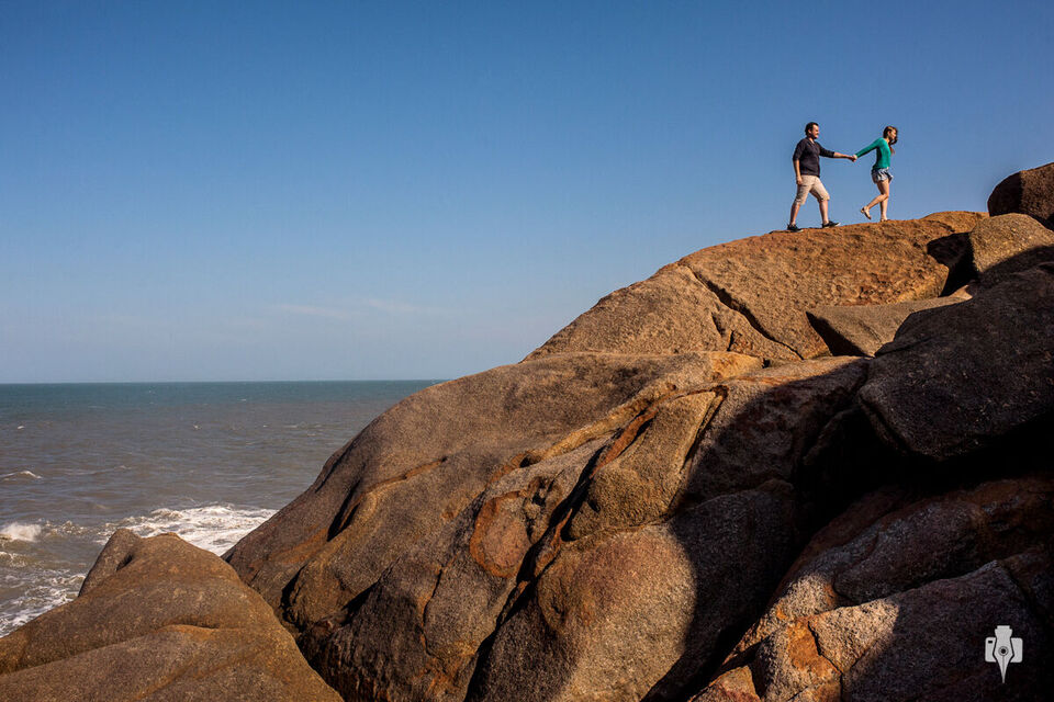 A Yole e o Gustavo são super tranquilos e nada melhor que o mar pra cenário desse amor. Por isso acordamos cedinho pra viajar até Guarda do Embaú, em Santa Catarina, um lugar paradisíaco. O dia foi intenso, com muita caminhada, exploramos todos os cantinhos, a luz linda da praia. Foram subidas, passeios de barco, e teve até pausa pra cerveja pra dar aquele upgrade né, Gustavo?!