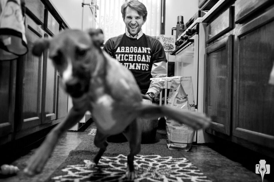 A sessão fotográfica foi feita pelos lugares cotidianos, em meio aos livros da biblioteca, no ambiente da Universidade, na casa de estudantes onde eles vivem, e local em que receberam o Nei (e foram super receptivos)! Chili, a mascote da família fez revelar toda a irreverência e espontaneidade do casal! Foi um ensaio fotográfico muito leve, em meio às fotos bebemos boas IPAs (as preferidas do Greg), experimentamos boa culinária (também marca do lugar), e assim pudemos documentar a vida deles em casa também!