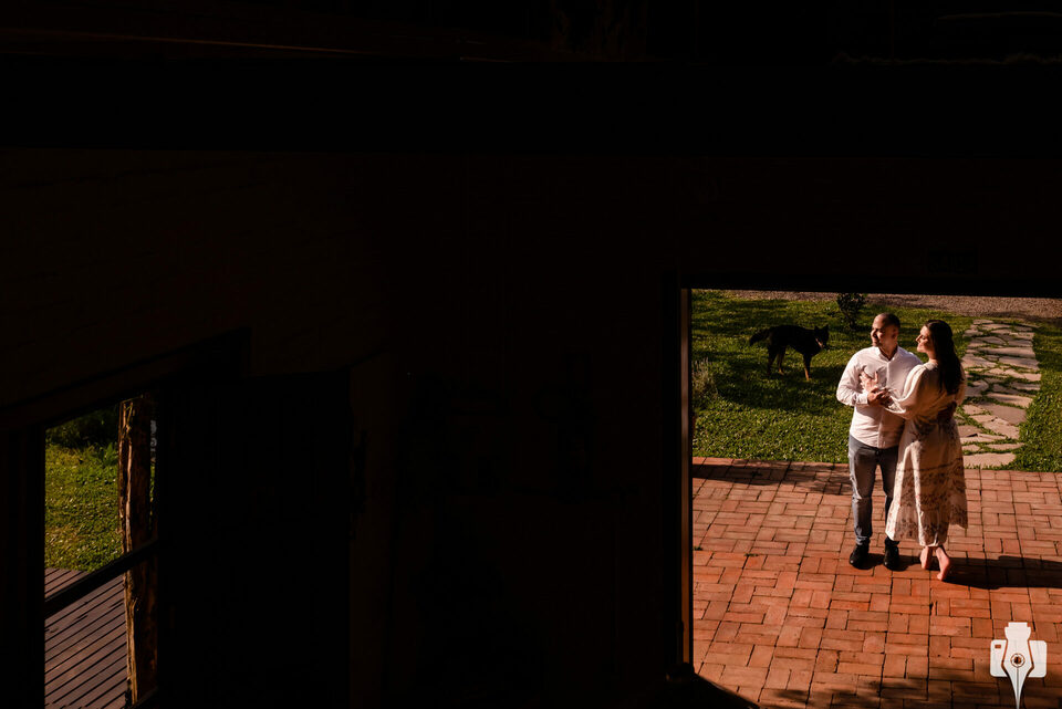 Mas antes desta data tão esperada, registramos o ensaio pré wedding deles, que foi em uma pousada linda em São Francisco de Paula. Eles que são apaixonados pelos animais, tiveram a participação especial dos cãezinhos que moram na propriedade.