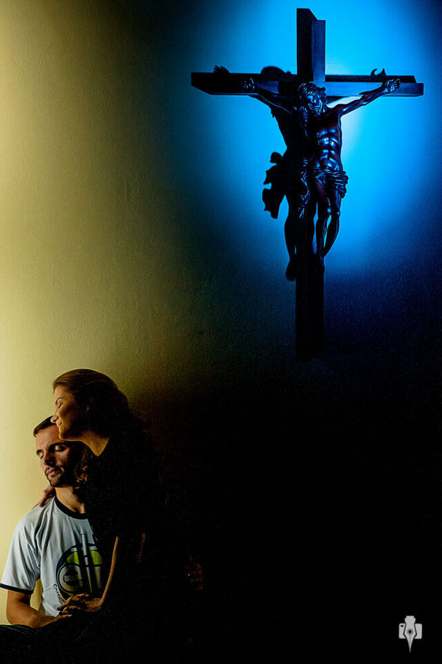 Adoramos a ideia do ensaio, que foi ligar esse laço que a Rosherie e o Filipe tem com a religião. Eles são de berço católico e foi em uma linda Capela da Unisinos que a história deles começou. Não haveria lugar mais significativo como cenário!