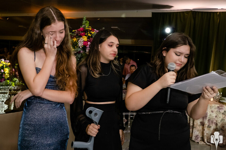 Nos momentos que se antecediam a festa, podíamos notar a ansiedade nos olhos da Gaby e com o início da cerimônia a emoção e as lágrimas de felicidade fluíram livremente, principalmente durante as homenagens da família e dos amigos.