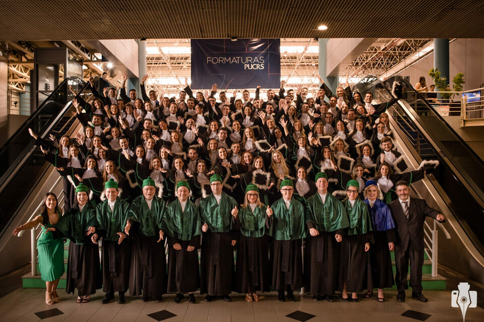 A formatura foi na Pontifícia Universidade Católica do Rio Grande do Sul, PUC/RS