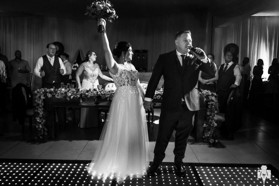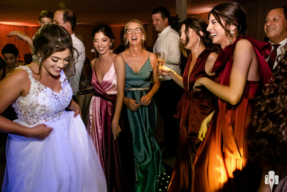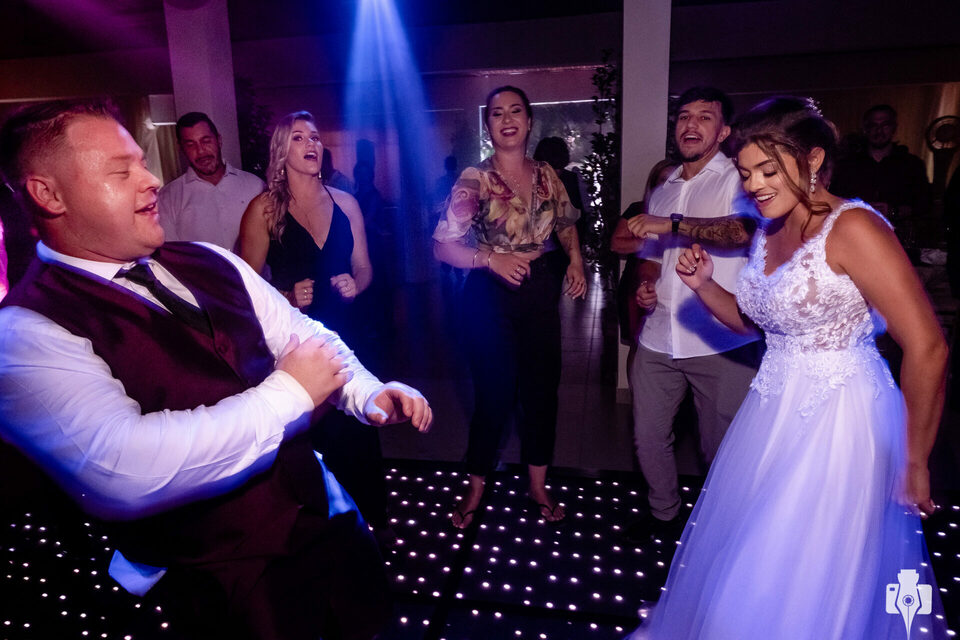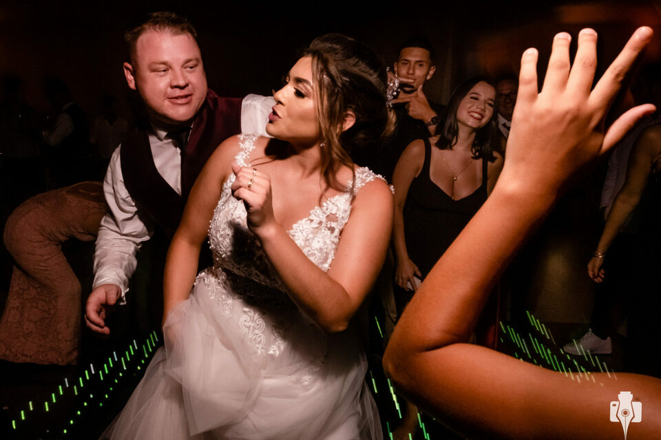 A festa estava demais, os noivos se divertiram muito com os convidados, viraram a noite e finalizaram o evento com o sol nascendo.