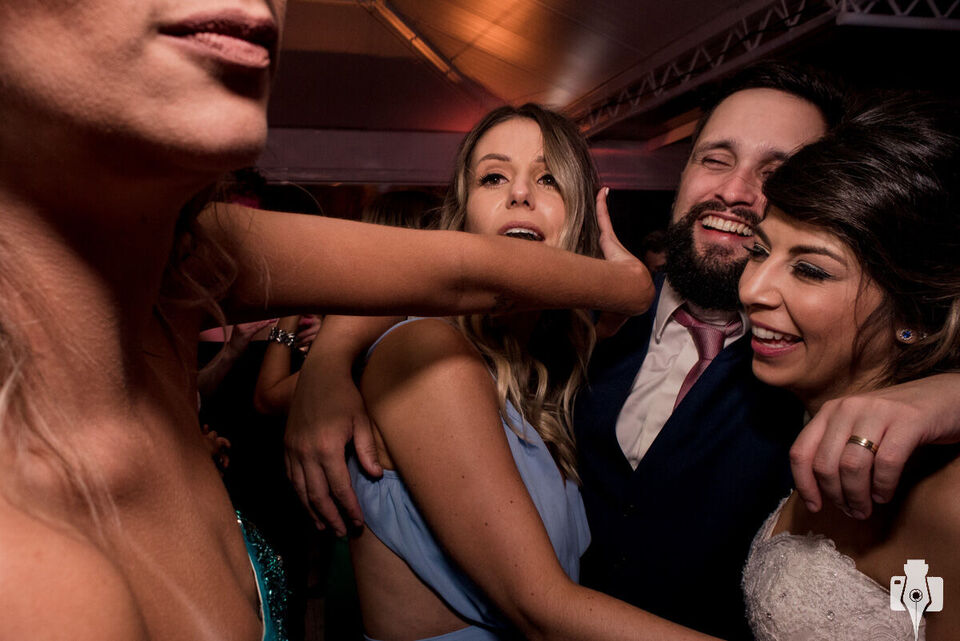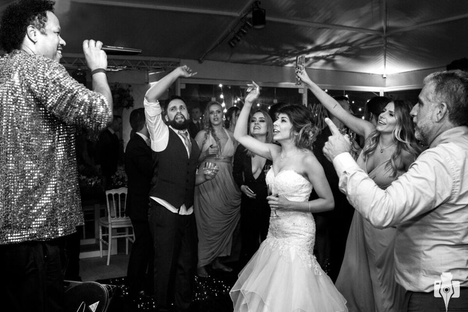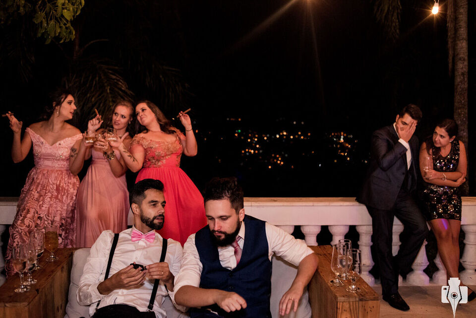 A festa foi até o nascer do outro dia e os convidados aproveitaram cada segundo! Com muito whisky, charuto e comida; a noite toda foi muito intensa e com um repertório espetacular. Inicialmente, a Banda Viúva Negra animou toda a galera com um rock sensacional. Eu conheço a Banda de muitos anos e foi ótimos revê-los e ainda aproveitar um som tão bom. A festa também teve o melhor cover do Tim Maia, o Jorjão! Esse momento foi uma surpresa para o noivo e é claro que ele gostou demais. Por fim, o DJ agitou todos até o último segundo e nós ficamos até o final!