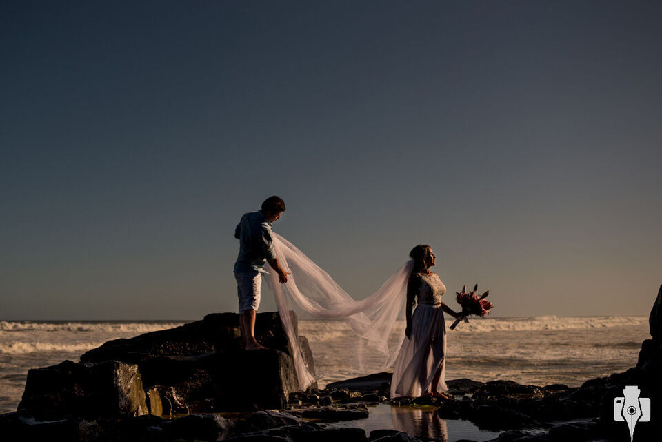 Nosso dia foi incrível, fotografamos em Torres, uma praia do Rio grande do Sul que se destaca em meio a tantas outras por ser a única com paredões rochosos à beira-mar, algo magnifico de se ver. Adoramos a tarde, tanto pela companhia como pelo lugar, sempre que estamos lá o trabalho se torna leve e divertido de fazer, afinal, quem não gosta da vista praiana e da brisa do mar, não é? Mas ele pode ser um tanto quanto traiçoeiro as vezes, tanto que quase levou o véu da Tatiana consigo no meio do ensaio, pode isso? Hahaha.