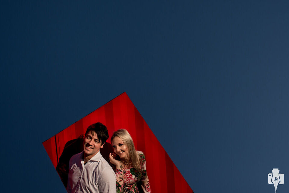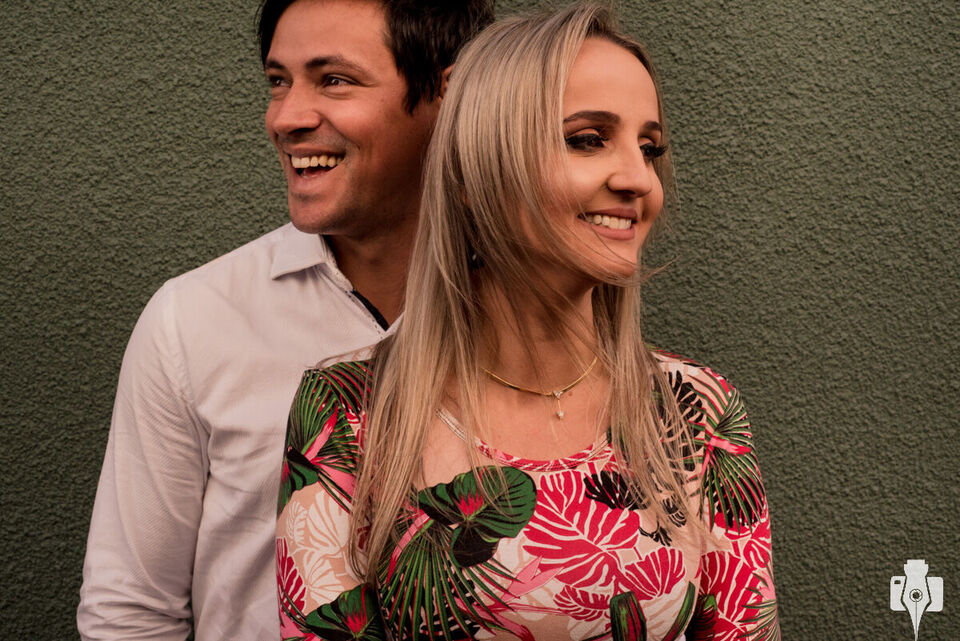 O clima estava muito bom, desde as primeiras horas do dia tivemos a sorte de ter a companhia do sol e de um céu azul limpo, o que nos proporcionou uma luz incrível, que deixou as fotos cheias de cor. O local que escolhemos para fazer as fotos foi o Xis do Cebola, um lugar muito conhecido aqui na cidade de Rolante, e que serve muito bem de fundo para fazer um ensaio de casal. Inclusive testamos algumas ideias que surgiram na noite anterior, e o resultado ficou muito legal. É importante lembrar que quem mais passou trabalho durante as fotos foi o Fabiano, que teve que ficar pendurado pelas pernas, mas as fotos valeram a pena hahaha.