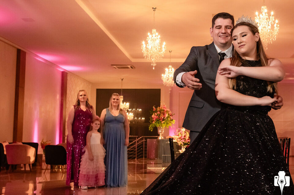 A Raphaela, sempre linda, usou preto sua cor favorita, brilhou muito, dançou lindamente a valsa e teve uma linda homenagem do pai que cantou para ela.