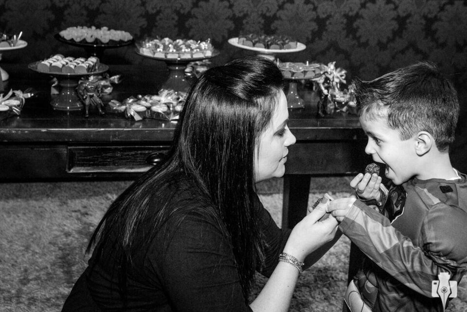 O local escolhido para a festa foi o Happy Bowling Bar, aqui na cidade de Rolante, um lugar cheio de diversões, com a pista de boliche, vários jogos de fliperama, e até um campo de futebol, no qual rolou algumas partidas, inclusive uma entre o Super Homem e o Capitão América. Não podemos esquecer da comida da festa, que recebeu muitos elogios, a mesa de doces estava linda, com vários sabores, mas o preferido do Arthur foram os tradicionais brigadeiros.
