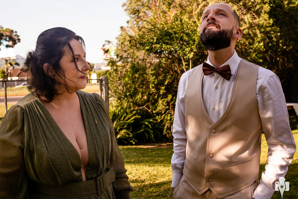 Um casal super alto astral, descontraído e apaixonado como podemos ver pelos sorrisos no rosto. No dia da cerimônia eles estavam muito radiantes, transbordando felicidade, dava para ver em seus olhos que estavam ansiosos para curtir esta união juntinhos!