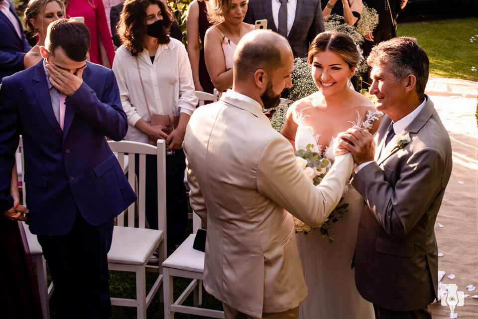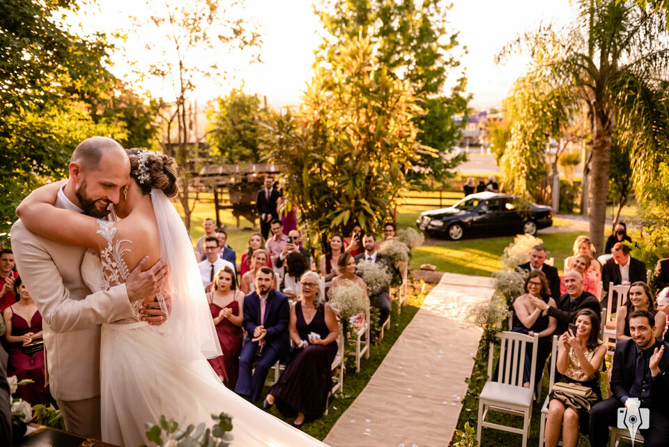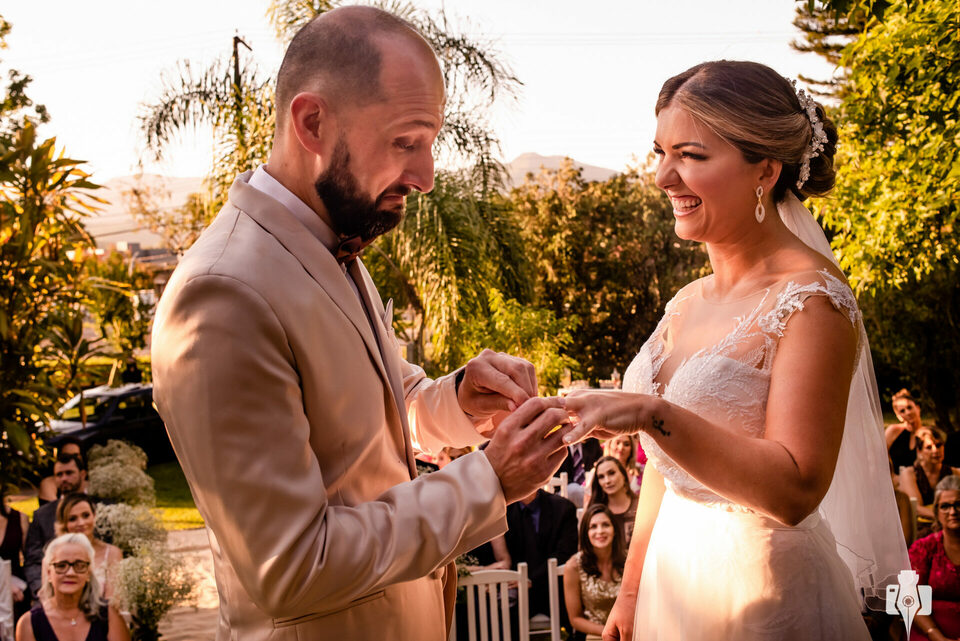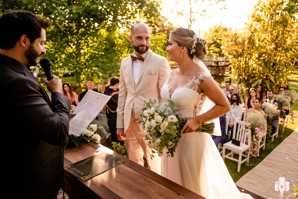 Sabe quando tudo sai como o planejado? Assim foi o casamento deste casal. O dia estava lindo, o clima perfeito, e a luz dourada de fim de tarde foi o que deu o charme durante a cerimônia que foi ao ar livre.