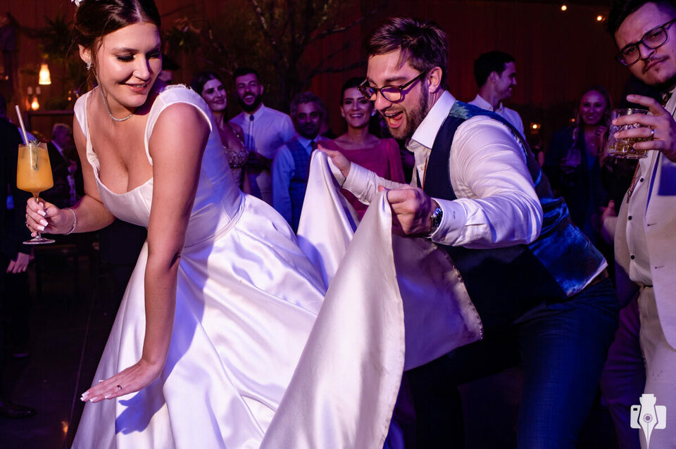 Os noivos muito felizes e simpáticos, tornaram a festa ainda mais linda.