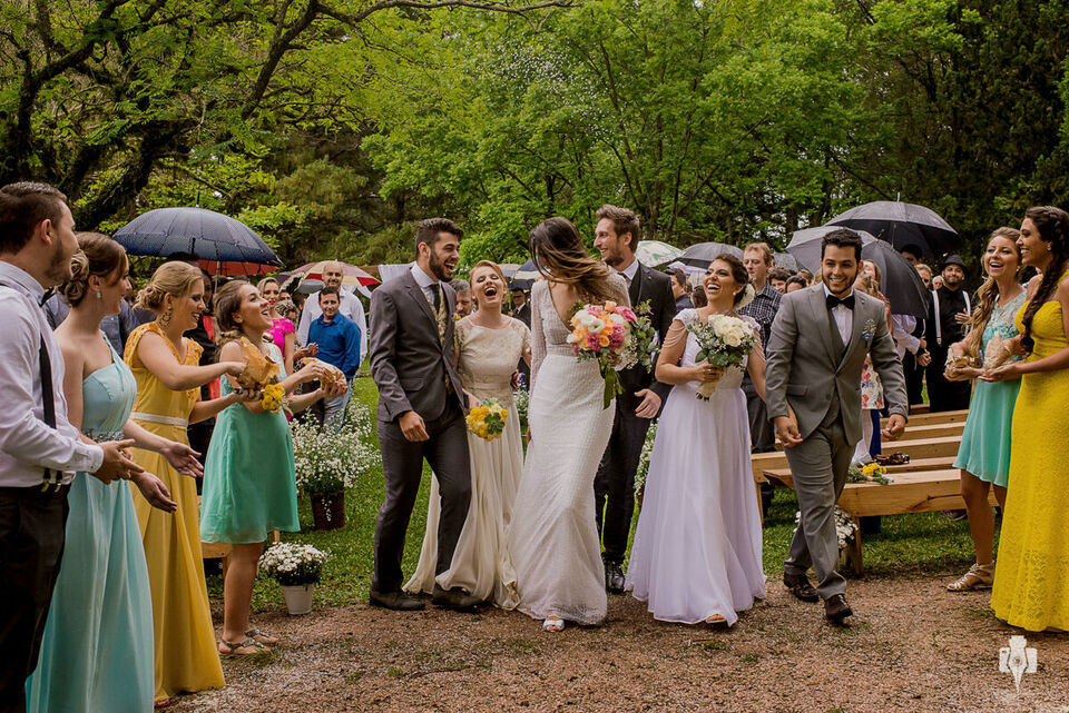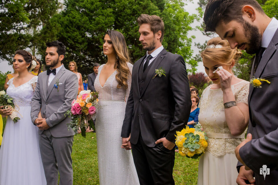3x amor foi uma experiência pra ser lembrada pra sempre. Tres noivas, três histórias diferentes, muita emoção rolando junta. Todos os convidados estavam achando a história muito diferente e interessante, estavam todos curiosos e ansiosos pela chegada desse dia. E foi abaixo de uma garoa mesmo que o casamento aconteceu. O sonho dos três casais era que fosse uma cerimonia ao ar livre, e assim foi. Dizem que chuva traz sorte pro casamento, nao é? Eles foram triplamente abençoados…