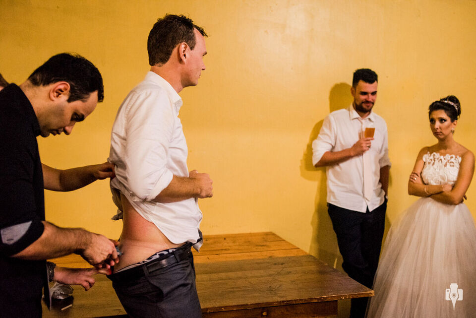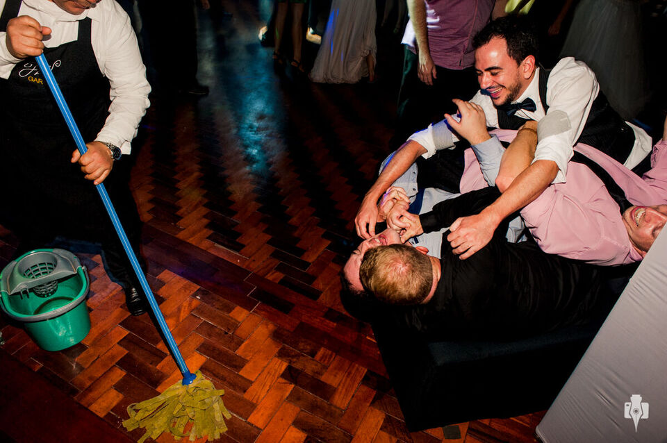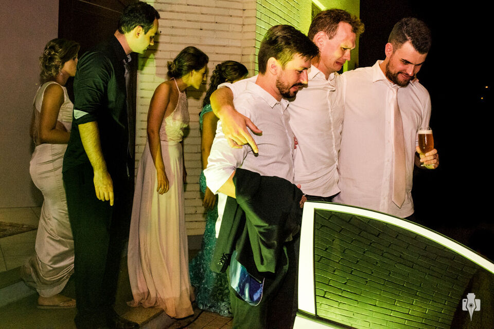Como tem virado um costume desta turma (vocês vão ver que tem muitas carinhas conhecidas por aqui), aproveitaram a festa intensamente, e diga-se de passagem que os noivos reuniram todos os convidados mais loucos da cidade... A festa acabou num incidente bem dolorido pro Jonas, que teve que levar injeção pra dor.