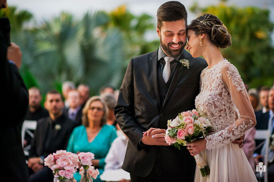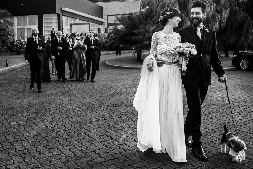 O destino fez um lindo trabalho juntando a Lariz, o Dudi e o Dylan (cãozinho mais fofo responsável por levar as alianças). Ele paulista, ela gaúcha, era no mínimo improvável que esse encontro fosse acontecer… Hoje, olhando para eles percebemos que tinha que ser assim, que independentemente de onde estivessem, eles um dia iriam se juntar e ficar para sempre, assim como nesse dia lindo, que mais parecia ser um sonho.
