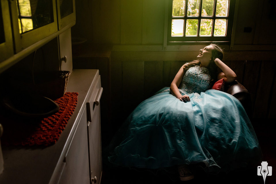 A Luisa é uma moça viajada, morou um período com os pais em Portugal, inteligente e decidida, logo sabia que faria o seu ensaio de 15 anos com vestido de festa.