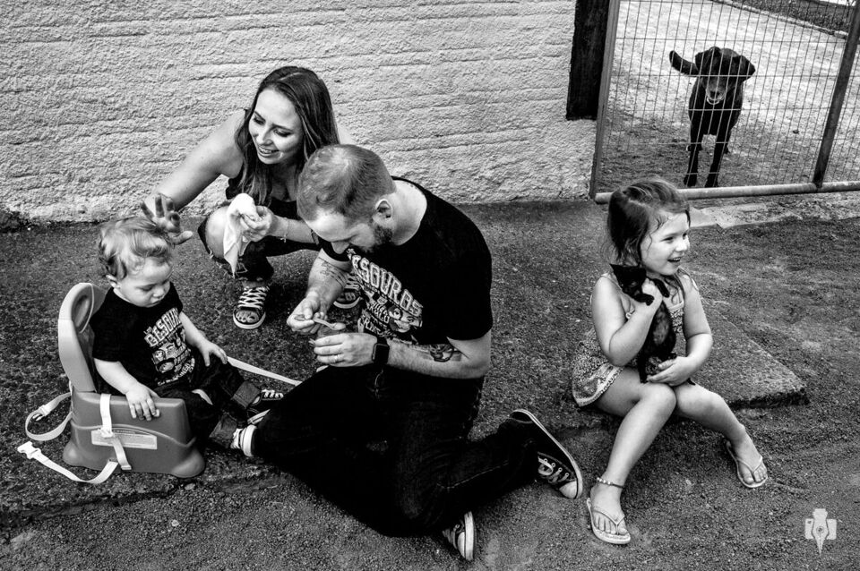 A Aline e o Gustavo são aqueles clientes amigos... Nós fotografamos o ensaio deles com os cachorros, viajamos para Colônia do Sacramento para o TTD, fotografamos o casamento, o ensaio de grávida, e agora o ensaio da família completa, com a comemoração do primeiro aninho do Caio, que pra variar teve cachorro também. Por sinal o Caio é tão adorador de bichinhos quanto os pais, e tivemos a oportunidade de fotografar o primeiro contato dele com as galinhas, momento que deixou a Aline e o Gustavo muito emocionados! Ou seja, já vivemos muitas alegrias juntos, e algumas maluquices também! É sempre uma festa estar perto deles, são pessoas que desejamos muito bem.