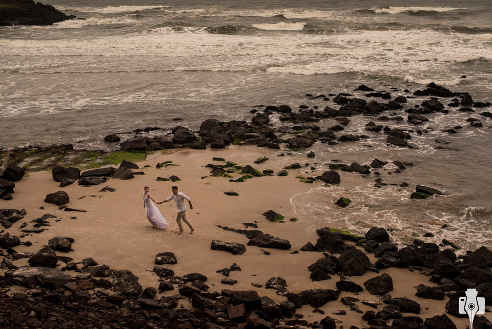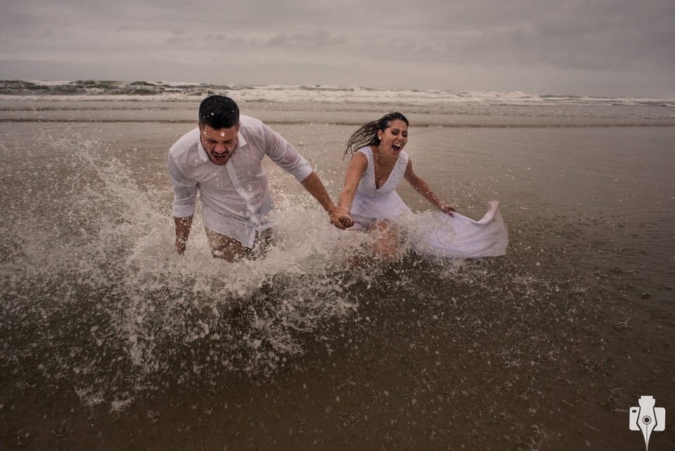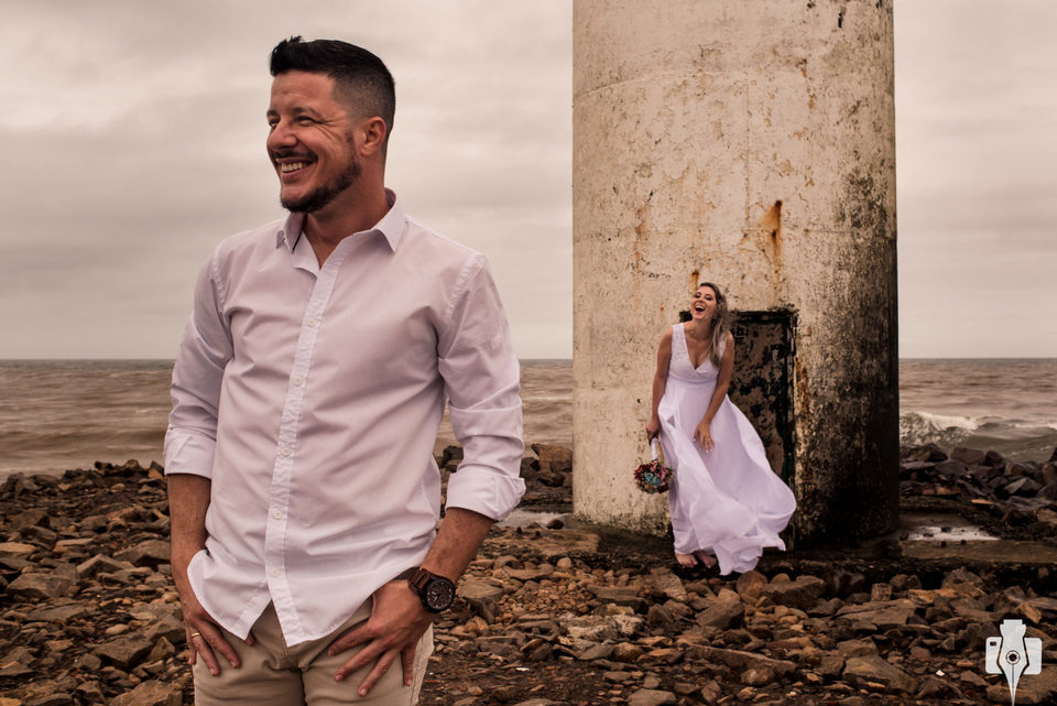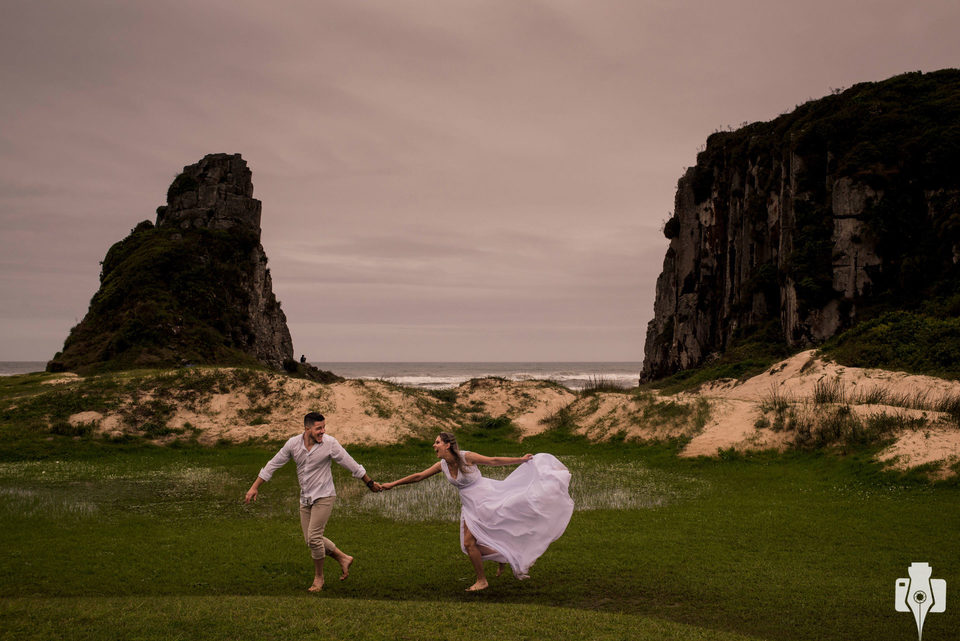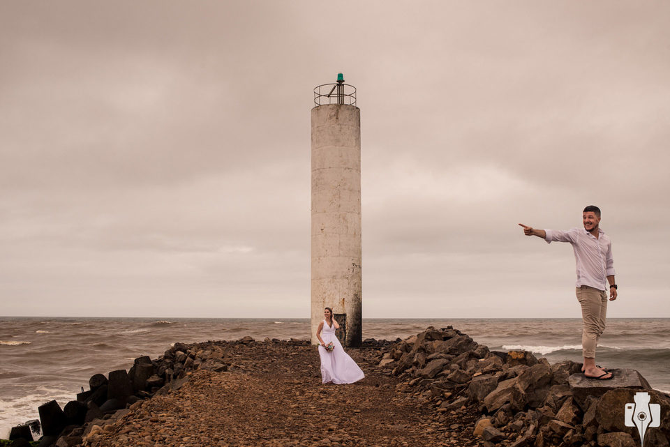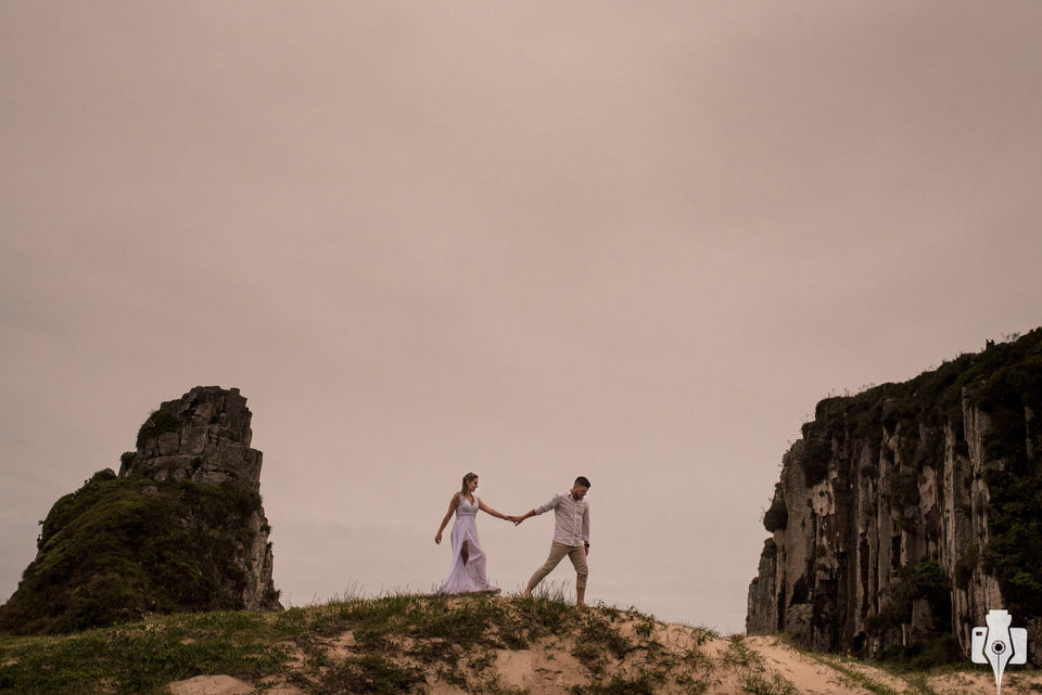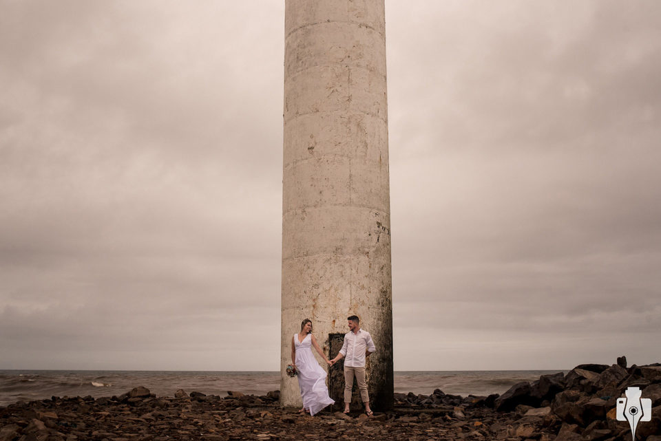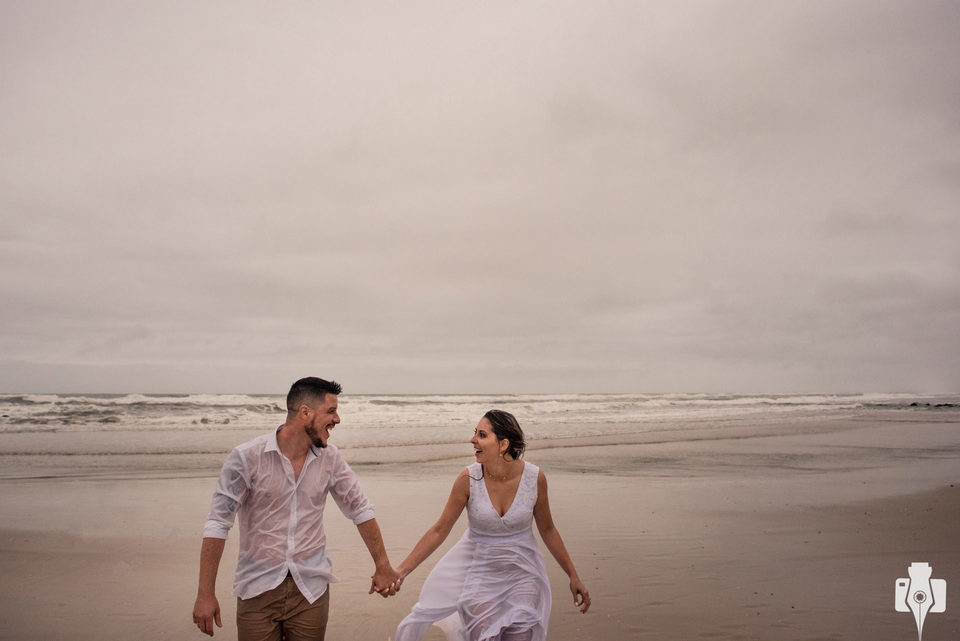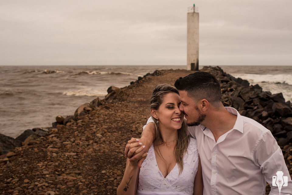 O ensaio aconteceu na praia de Torres, em um dia cinzento com uma garoa fina o que deixou tudo ainda mais emocionante, mas com a disposição do casal, topando tudo que foi proposto, o resultado ficou encantador.