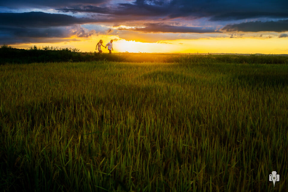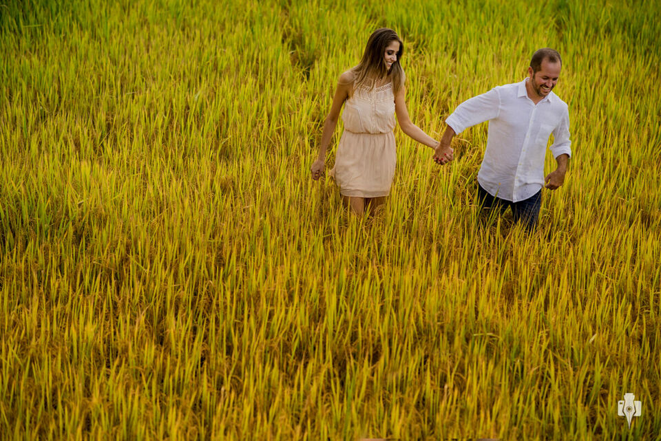 Não poderíamos passar essa tarde em um local mais bonito e com mais harmonia do que tivemos com a Mireli e o Humberto. Essa locação já ficou definida em nossa primeira conversa com o casal, o casarão em que o Humberto viveu a sua infância, cheio de retratos da família, e no 'pátio da casa’, a lavoura, paisagem que faz parte da rotina do noivo e também da Mireli e Bernardo nos finais de semana. Eles namoram há dezoito anos, e resolveram fazer dessa maioridade do relacionamento um marco em sua história.