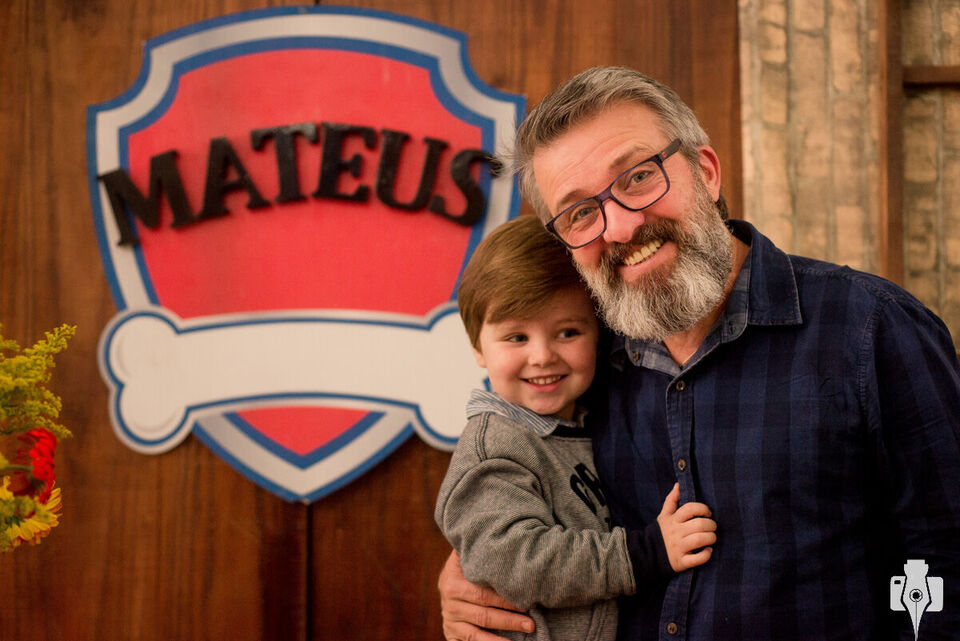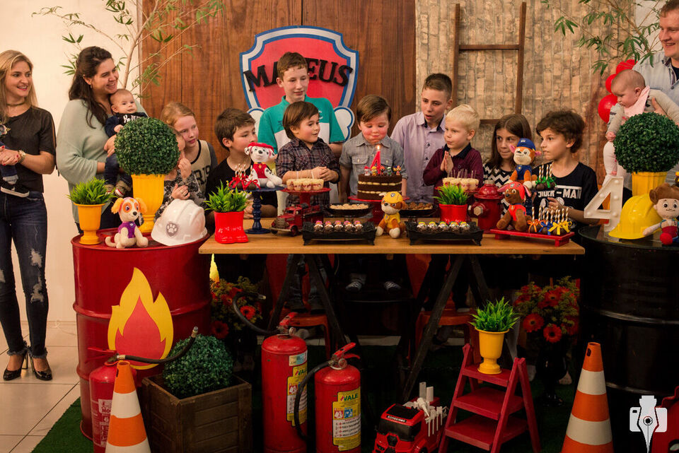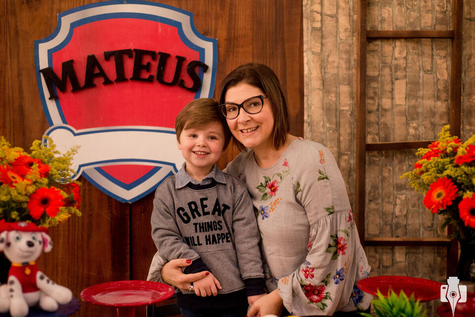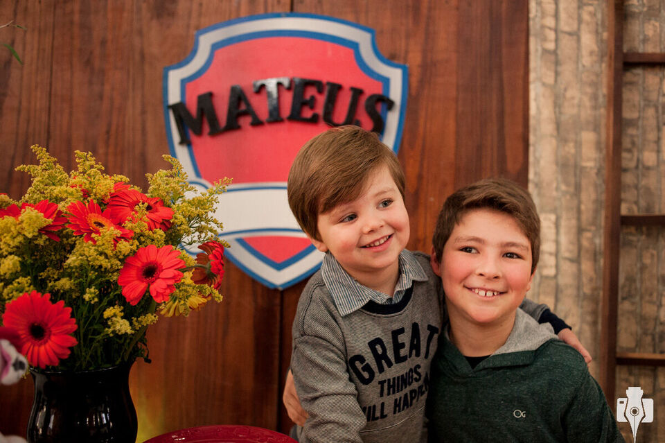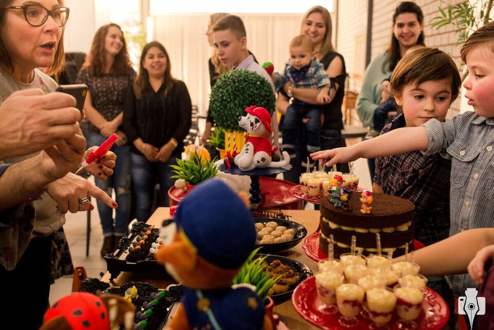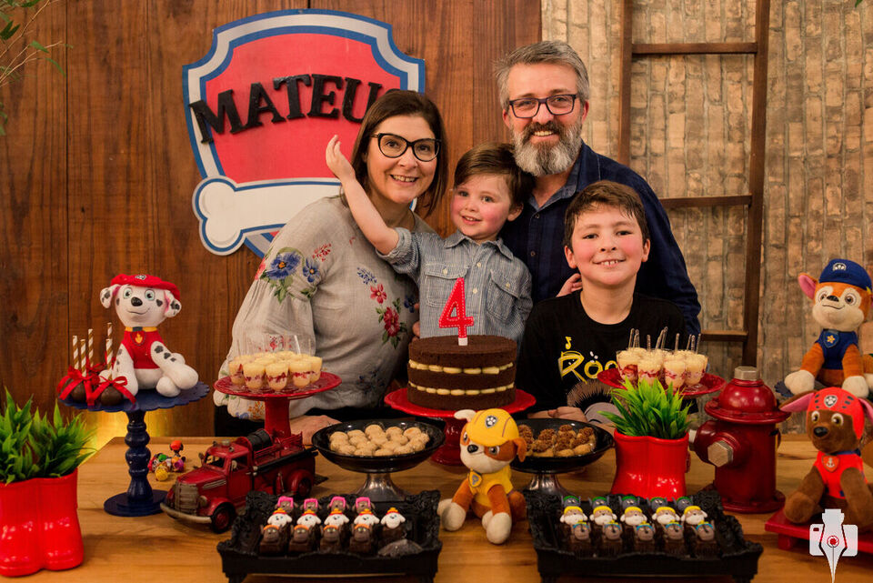 O Mateus já tinha pensado em todos que ele queria convidar (inclusive uma lista bem maior do que era possível, :P porque ele pode ser bem generoso), e também qual seria o tema da festa, o desenho preferido dele: Patrulha Canina. Como o personagem Ryder, o aniversariante da vez adora os bichinhos, principalmente o Farofa e o Pipoca (gatinhos de estimação aqui do estúdio).