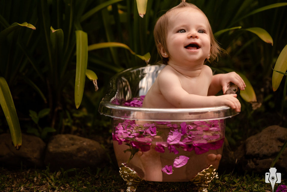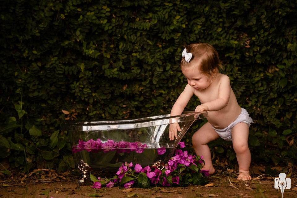Nessa sessão de nove meses a ideia era fazer fotos na banheira, mas quem diz que a Mari concordou com a ideia, no primeiro momento ficou arredia à novidade de tomar banho ao ar livre heheheh, mas a mamãe Andiara, o mano e o papai convenceram a pequena e no fim, foi pura diversão!!!